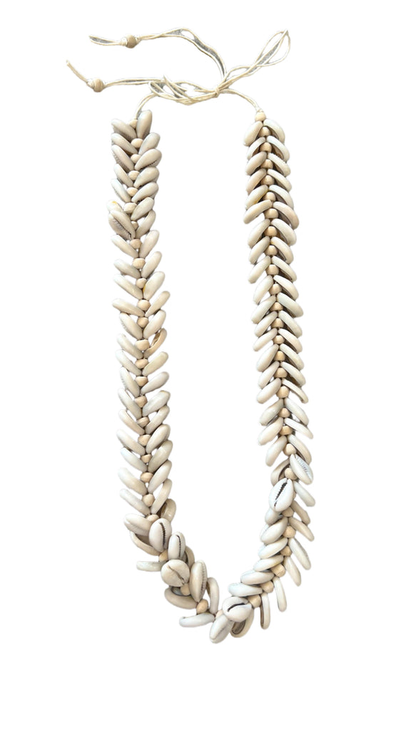 Hand crafted from natural cowrie shells, interspersed with beads and an adjustable cord fastening so you can ensure it fits perfectly.
