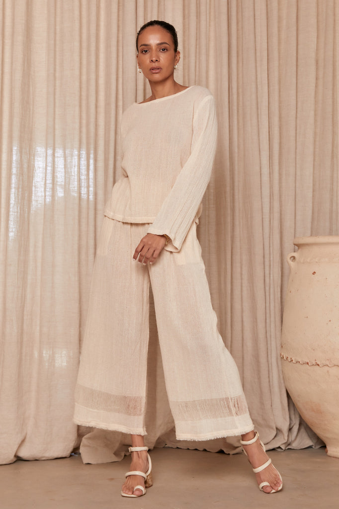 Wide scooped neckline . Perfectly paired with Rumi pants for an effortless look.