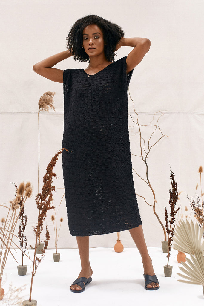Chic and effortless, made from 100% cotton hand-crochet. A relaxed fit midi length dress that can be styled over swimmers or a slip. A holiday must-have and an all season long.
